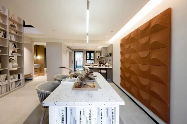 小镇生活体验馆:由大匀设计,是一座通排落地玻璃窗的白色建筑,位于小镇中心湖大草坪一侧。现代极简的几何造型,窗明几净的材质搭配,赋予场馆特殊的标志符号。它是游客到访小镇的第一站,是文化展览等活动的举办地,也是社区业主的精神空间,人们在此阅读、会谈、聆听、交流。
