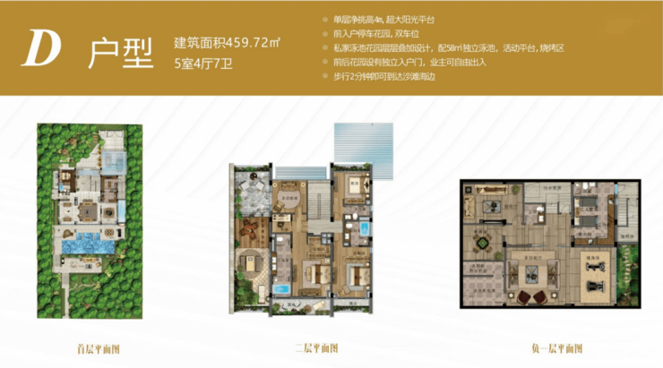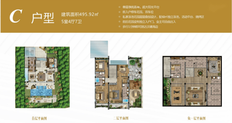 建筑面积约:422㎡ - 730㎡ 国岸上争藏别墅,只为少数派专属量身定制。