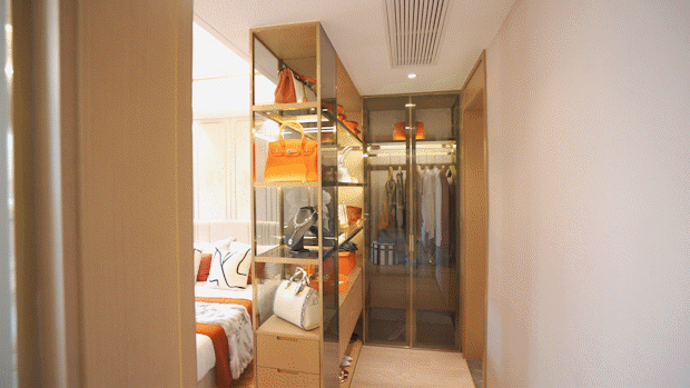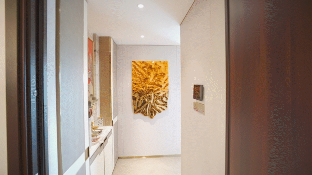 首先是入户玄关,拐角遮挡维护私密性,预留充足空间设置收纳,归家的仪式感一下就出来了。