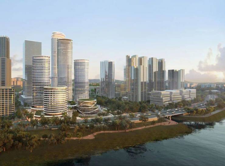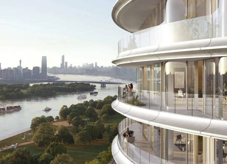 外部圆弧造型优美,能实现江景最大化;而内部空间方正宽敞明亮,体现了中国传统文化的刚柔并济、和谐共生理念。