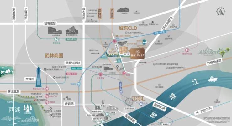 除地段和交通外,南侧一线河景,周围环绕千亩城市生态公园及总投资150亿元的笕桥历史文化街区,于繁华之上演绎都会自然奢隐,呈现层峯品质生活的多维体验。