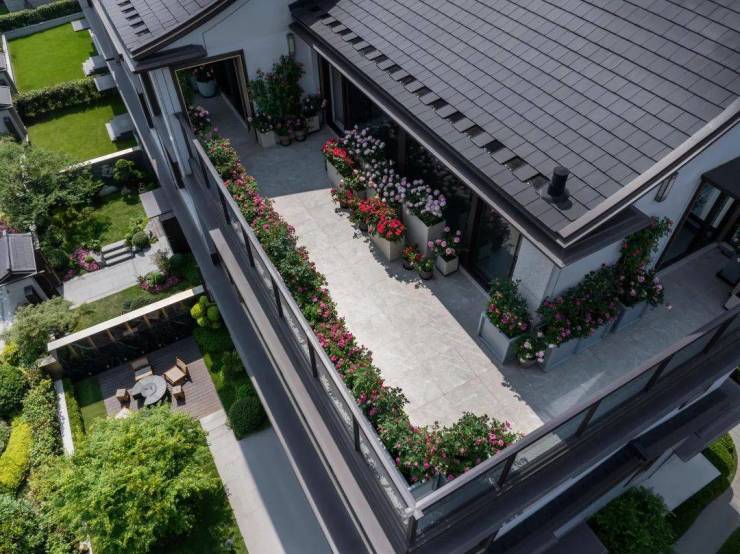 建面约225㎡边套上叠,虽然总面积略小于下叠,但三层拥有超大的大阳台,四层还有超大的L型露台,不仅可以在家里聚会趴体BBQ,向外眺望,龙坞的茶山绿野尽入眼底。无论上叠还是下叠,都很适合三代同堂的大家庭居住。