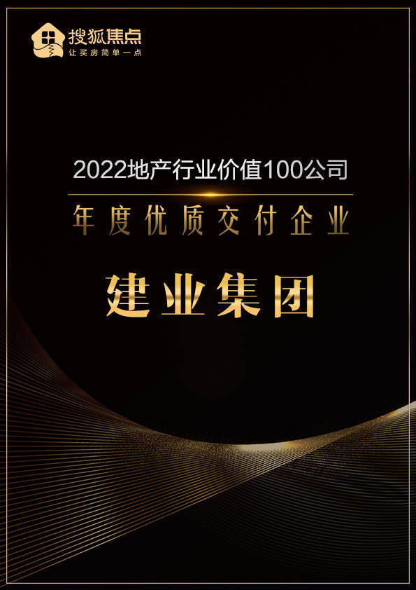 评选结果显示,建业集团获颁2022地产价值100公司“年度优质交付企业”大奖。