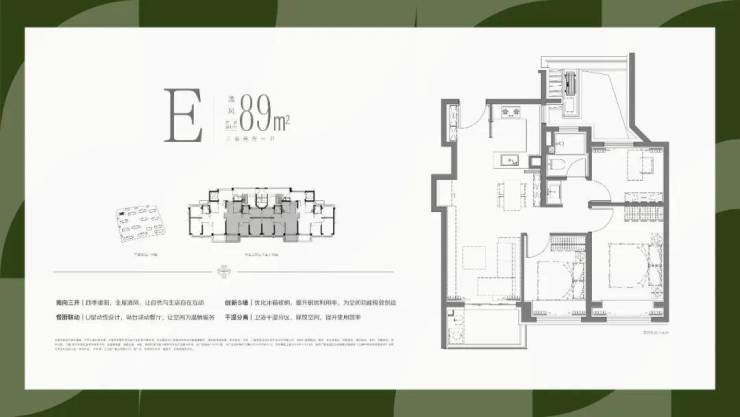 1、全部南向大面宽设计,保证最为出众的采光和视野需求;