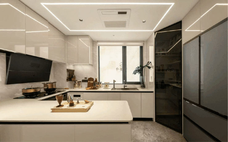 厨房集成方太高端厨电,并配备大金厨房专用空调,让烹饪从容而优雅。卫浴空间甄选瑞士劳芬智能洁具,双台盆设计巧妙化解晨间忙碌。全屋配备大金中央空调、松下新风、博世地暖,构筑恒温、恒氧、恒静的健康舒居环境。从一道收边到一枚五金,皆在以看不见的匠心,兑现看得见的品质承诺。