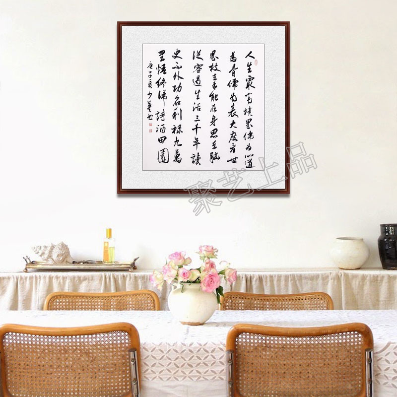 “书画悬之中庭”自古有之。而现今,很多人为了显示自己的文化格调,都喜欢用书法作品来装点室内墙面。在客厅、书房、卧室等场所悬挂书法作品,将高雅艺术以灵动自、然、流畅的线条展示出来,让墙面呈现出丰富多样的韵味和格调,光是想一想就感觉很美好呢。