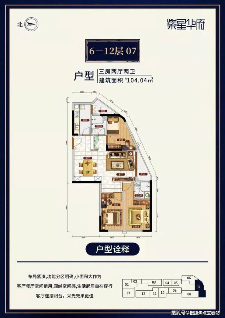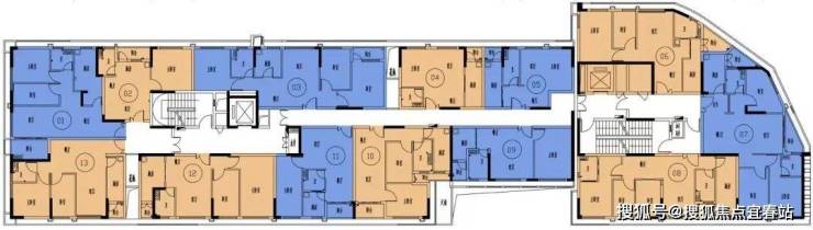 项目首层包括商铺和入户大堂,2层是商业,3-4层是企业总部写字楼,5层是社区公配,6-21层是住宅,2-5层的电梯与住宅的电梯是分开设置,不会相互干扰,住宅面积约70-104㎡两到三房为主,合计154户。