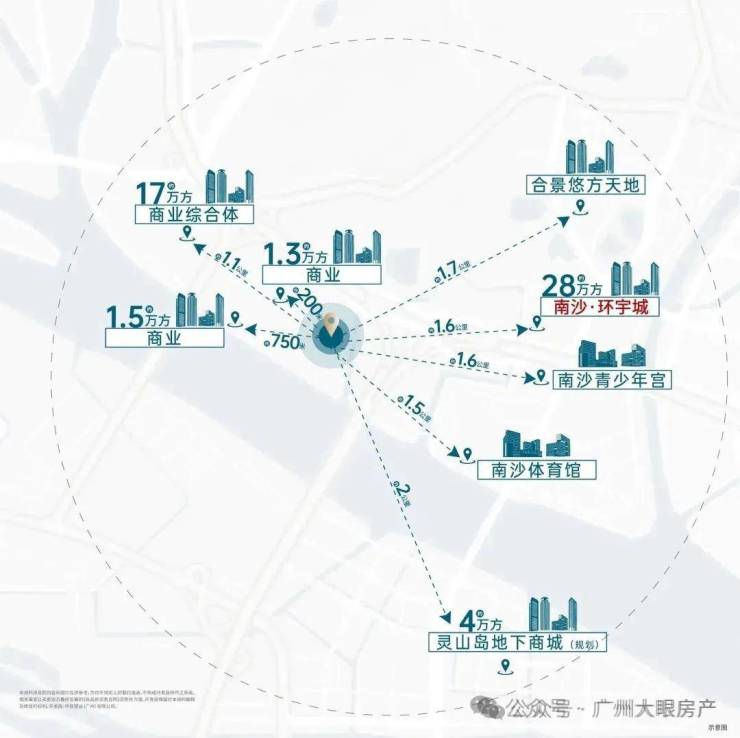 项目位于南沙区府与灵山岛CBD黄金交汇处,所在片区定位为大湾区顶级魅力艺创门户,未来居住人口可达11.14万人