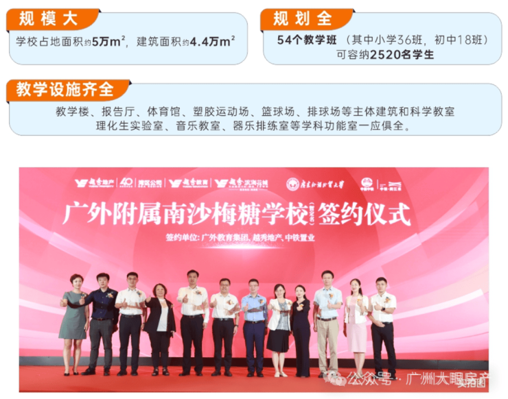 2023年9月28日,中铁置业(广州)有限公司携手广外教育集团共建广外附属南沙梅糖学校,其距离中铁·阅江来仅约500米