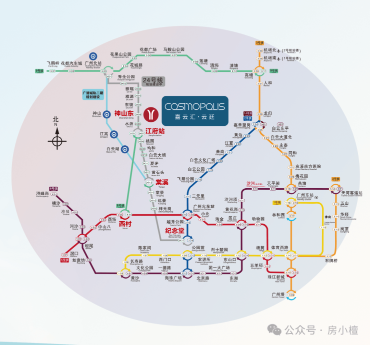 商业配套:北站中旅免税广场(规划中)、广百来又来、大润发、百花广场等