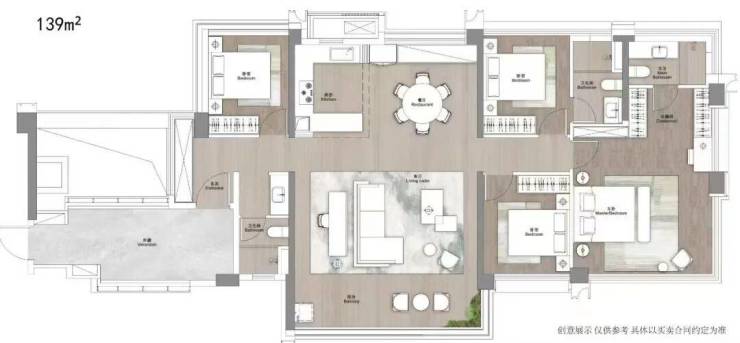 在户型设计上,全部为南向四房,最小户型98㎡,最大户型139㎡,据说是超新规产品,得房率去到120-130%。
