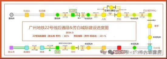 22 号线建设中,二期在建完成68%,开通后可直达白云机场,出行办公旅游都比较方便;
