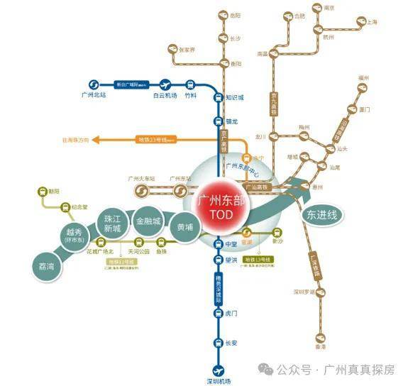 地铁/城际:23号线(规划中)近若比邻;距离新白广城际开发区站约3公里,开通后快速接驳广州北站、白云机场。依托广州东部TOD(距离4公里)汇聚5地铁、3铁路、2城际等10轨交汇,实现1站速达黄埔,打造“半小时湾区生活圈”