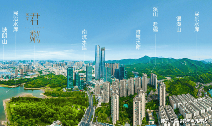 君粼近享银湖山、塘朗山两大山脉,揽民治、民乐、雅宝、南坑四大湖泊;