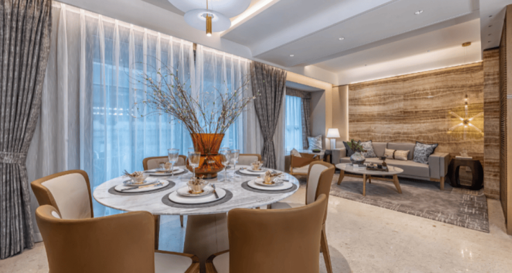 在住宅产品打造上【龙光·天曜】以新加坡现代极简美学为基调,外立面采用米白色与高级灰主色调,搭配大面积三玻两腔材质玻璃,打造临港特色住区。