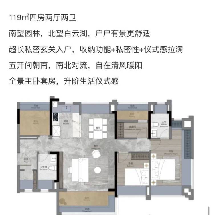 · 户户朝南,部分户型部分楼层可瞰湖观园