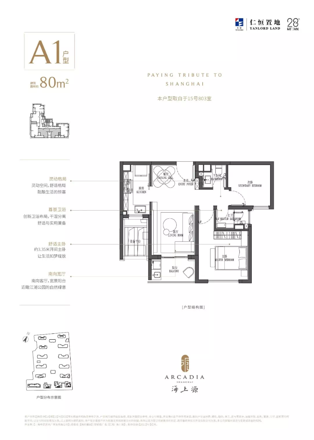 杨浦的仁恒海上源,80㎡的小户型产品,不过舒适度就没大面积产品高。