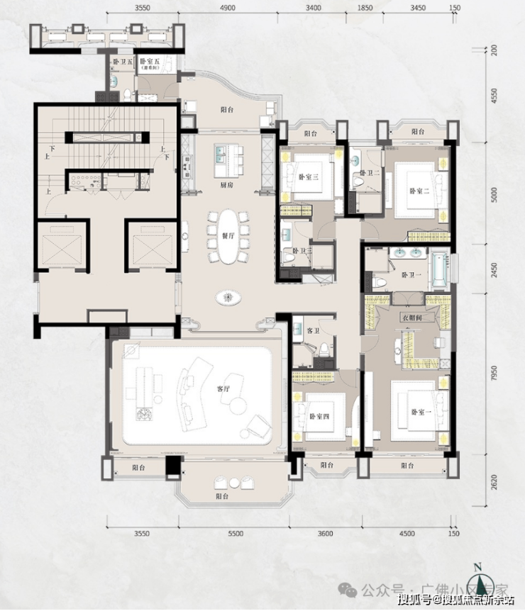 🌟客厅、餐厅、水吧、休闲厅4个不同的生活场景,加起来超过125㎡;