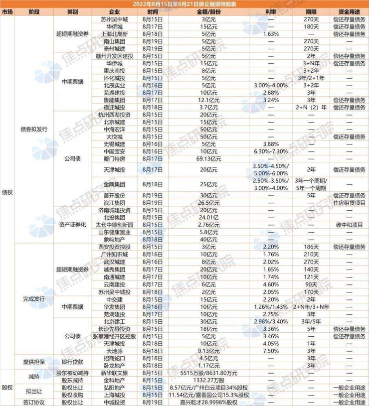 从房企债券市场表现来看,民营房企连续三周未能亮相境内债市场,尽管有消息称中债信用将为六家示范房企发债提供“全额无条件不可撤销连带责任担保”,而这六家房企中就包括多家民营房企。但截至目前,这些民企暂无实际发行工作出现。另外,华侨城本周计划利用超短期融资券和中期票据融资30亿元,是最为活跃的房企之一。此外,太仓中德创新园将发行2.76亿元碳中和ABS,是房地产领域该细分产品的一次突破。
