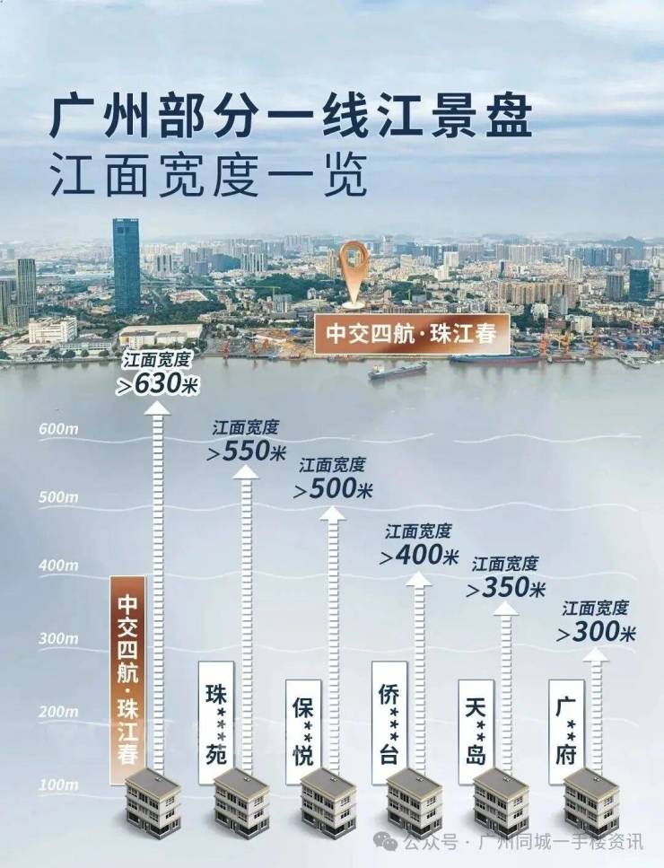 要知道,珠江新城豪宅依附的江面,宽度仅约400米;而越秀天河的江景房,江面基本只有约300米。