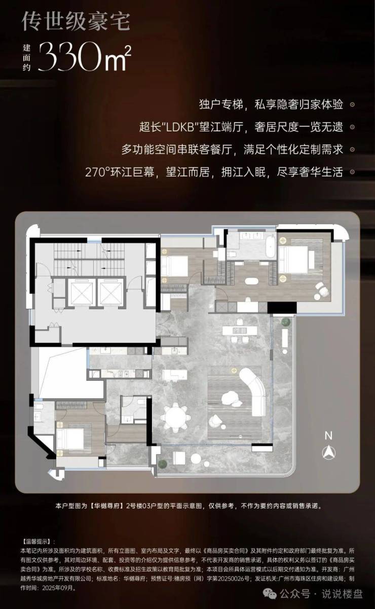 以建面约330平户型为例,它是珠城琶洲“双CBD核心”目前唯一在售的端厅产品,自带270°超广角视野。