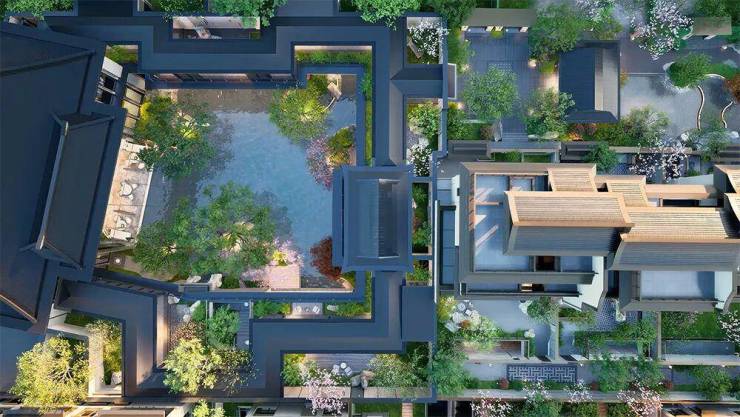 园林的营造,彻底超越了常规的绿化范畴。它取意“西湖古典园林之冠”郭庄的布局神韵,匠心构建“一轴、两园、四坊、八巷、十景”的立体游园序列。更引人入胜的是下沉式庭院中的“云挂飞瀑”与“五境立体山水”归家仪式,每一次归家,皆是一场穿越园林、洗涤尘心的诗意仪式。