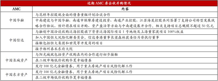 过去AMC主要是从银行、非银行金融机构和出险房企处收购不良资产,主要集中在一些中小型房企,如今AMC是更直接、更大范围地参与出险房企债务化解,当中不乏一些规模房企。