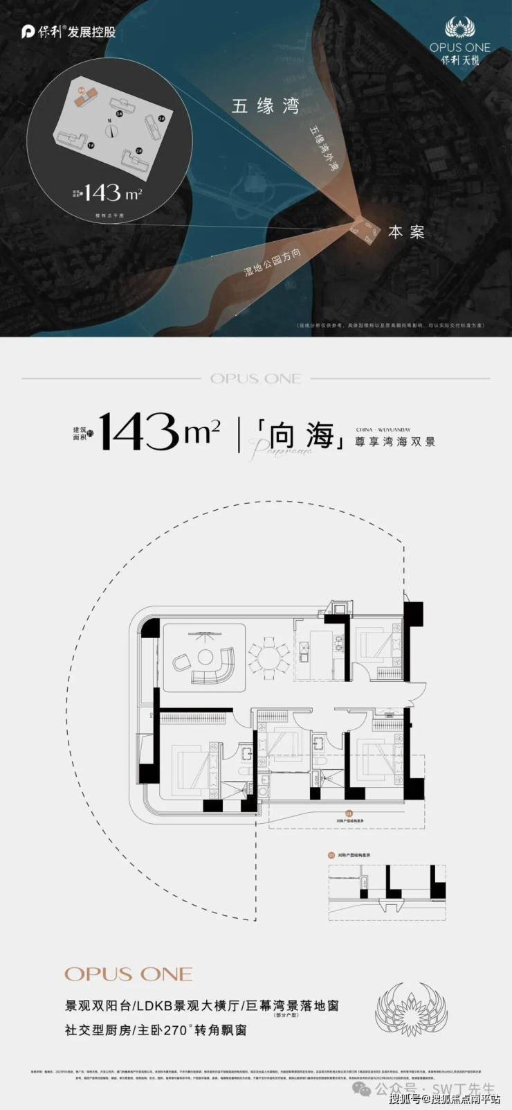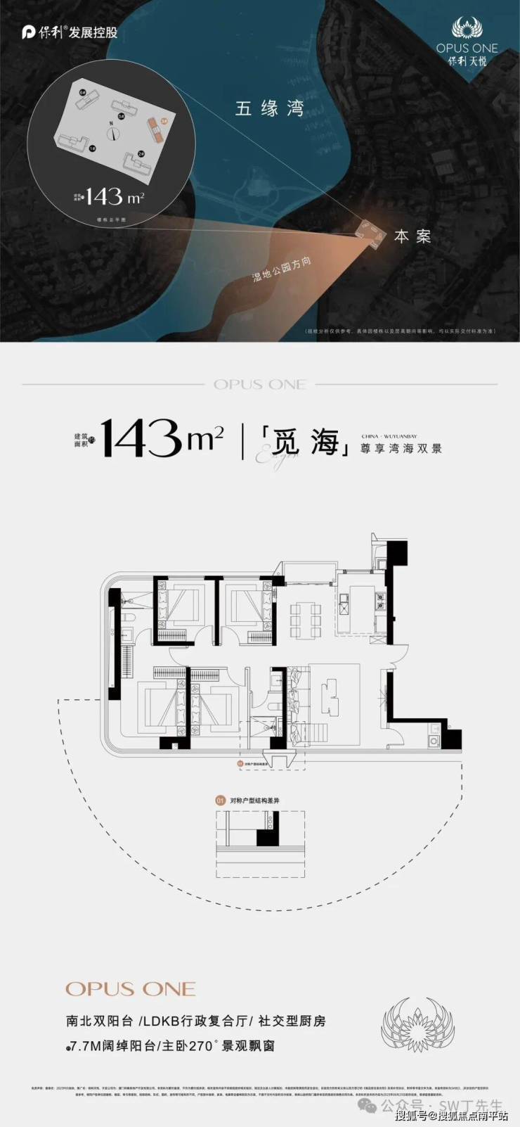 比起恒禾,保利天悦的地块虽小,但地形方正,经过保利匠心独运测算设计,五栋楼排布得既围合又相互交错,西南本来可以做享有最大景观面的3栋大户型楼王,却拔除一栋精妙留白,让北面三栋都能透过留白,拥享南面大湾景,而6#楼143户型更可以看到内外湾双面景观,性价比超高! 所有户型五楼以上户户观景,再加上最大约20米的超大面宽,实现采光面、景观可视面巨幕化!