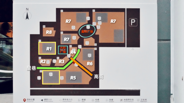 主干道高街(时尚街)及里巷(餐饮街)将圆形广场及方形广场相联通,为消费者带来了极具趣味性的逛街体验。