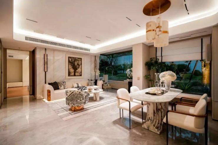 来到建面约125㎡户型的样板间,你对空间感的体验,会更为惊叹。