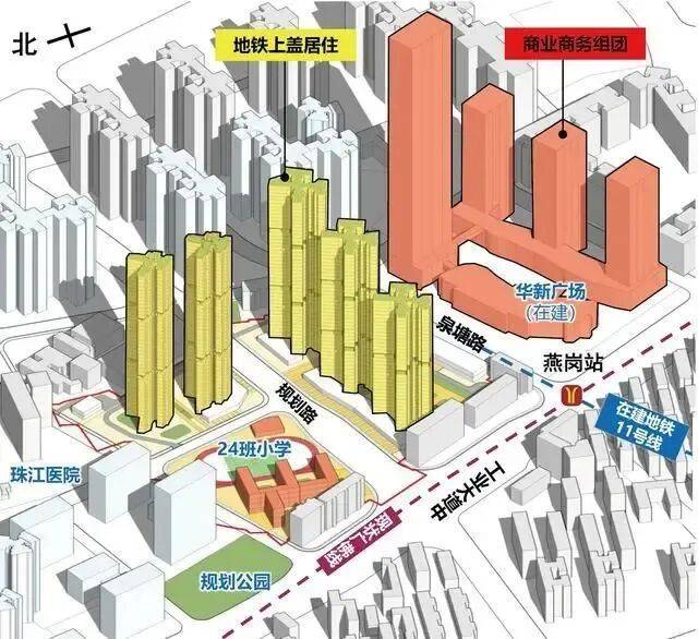 交通配套:小区门口就是广佛线+11号线(在建)燕岗站。可以算双地铁上盖的楼盘了。