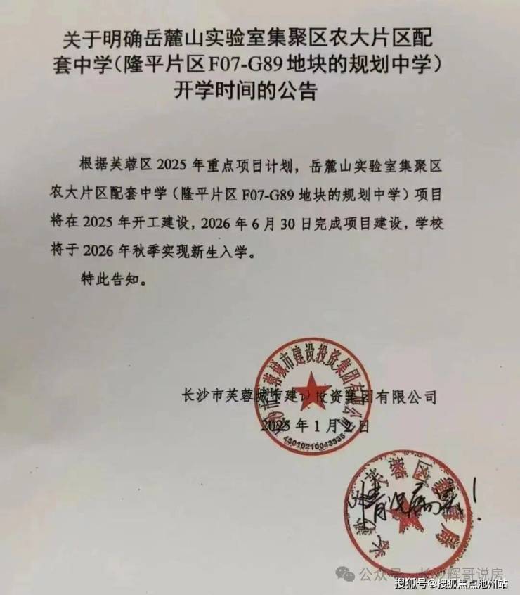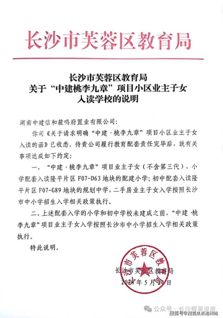 中建桃李九章项目配套入读湘郡培粹实验中学一校两址隆平校区(已开工建设),是芙蓉区唯一9年双名校配套入读项目