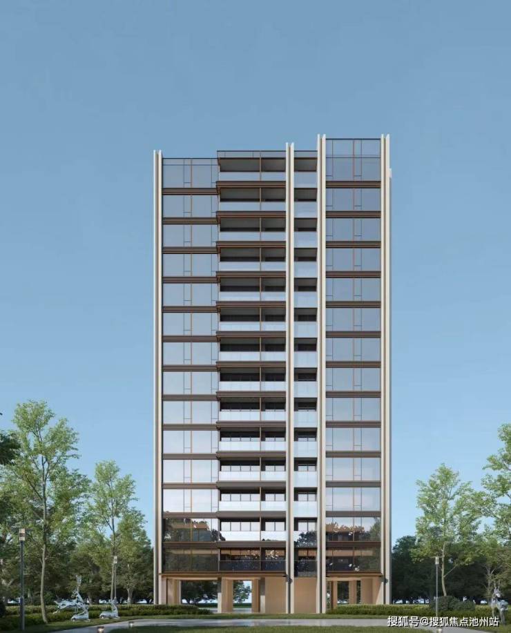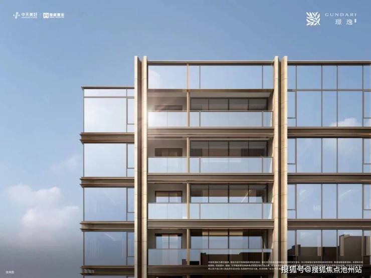 作为板块内首个四面铝板外立面项目,高层外立面选用仿石铝板搭配茶金色Low-E玻璃,整体形象简洁高级,历久弥新。