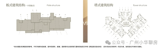 ×塔楼:混合朝向,并非户户朝南,户型间存在遮挡,容易产生对视,室内空气流线差,换气效果相对较差。