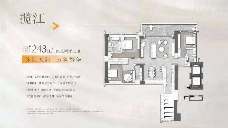 目前白鹅潭瑞玺在售的产品涵盖住宅大平层和商办单位,户型选择比较丰富。