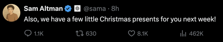 新模型发布后,OpenAI CEO山姆·奥特曼在X平台发推文表示,“过去的十年非常精彩,OpenAI的工作比我想象的还要特别。”