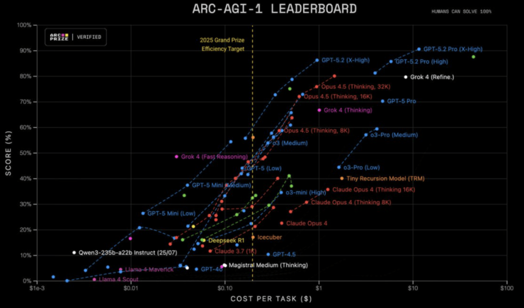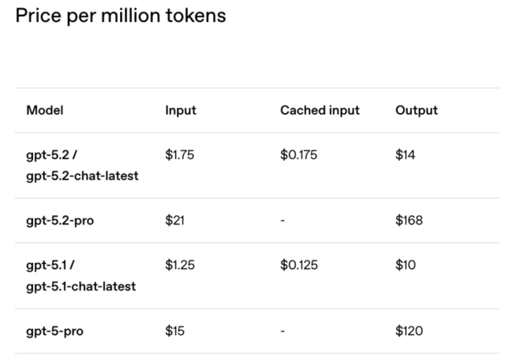 API方面,GPT-5.2定价为每百万输入token 1.75美元、输出token 14美元;Pro版本最高支持“xhigh”第五档推理强度,定价为每百万输入token 21美元,输出token 168美元。尽管单价上涨,OpenAI强调,因模型效率提升,实际使用成本反而下降。