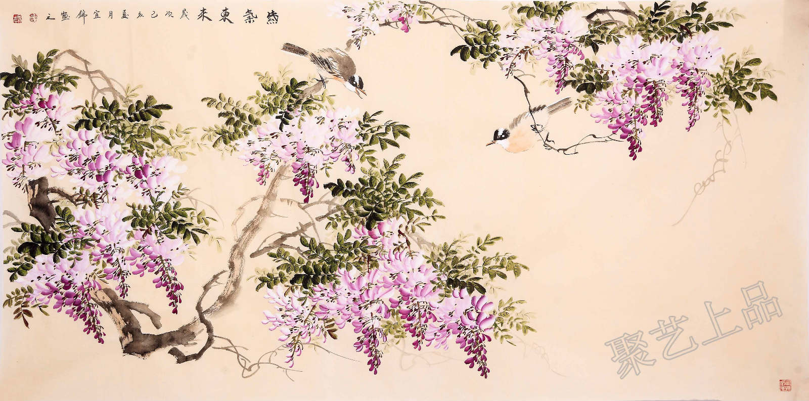 许宜锦国画紫藤《紫气东来》作品选自:聚艺上品