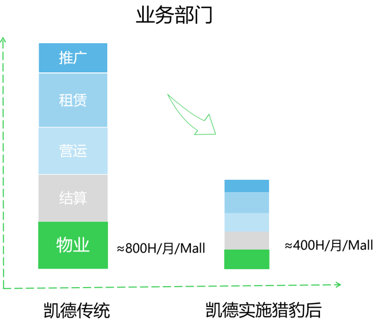 以凯德资产管理平台“猎豹”为例,通过系统内置的SOP及标准,实现业务线上化,并在各个环节设计了监管及预警机制,确保执行落地,提高了业务部门50%的工作效率。