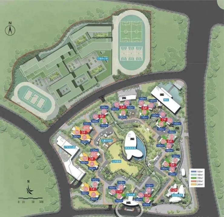 总规划:一期(12 栋住宅),二期 (16 栋别墅 + 8 栋洋房)