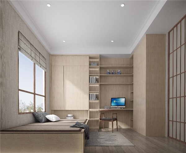 此外,榻榻米定制也是非常好的选择,米兰纳定制家居素系列就把榻榻米、书柜、书桌、衣柜组合起来,成为一体化柜子,既在风格上呈现统一性,又充分利用了卧室空间、提升收纳性能。