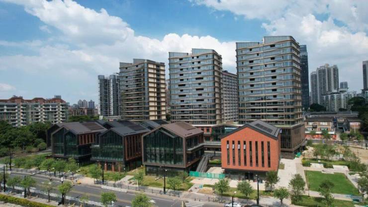 项目保留工业遗存的红砖墙与坡屋顶,同时创新打造3栋以“风帆”为灵感的16层塔楼。外立面弧面玻璃配古铜铝板,线条如江风鼓帆,勾勒出珠江岸线独特天际线。