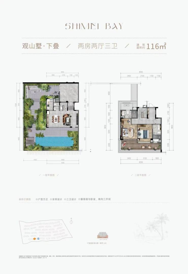 |建筑面积约116㎡○三卫设计,加倍从容,生活自在不拥挤○户型方正,全明设计,将阳光纳入生活○约8.4m大横厅,舒阔尺度,重拾旅居美好○客餐厨花园一体,LDKB专享度假格局○客餐厨与卧室,南向三开间,坐拥理想山海○主卧套房,约8.4m阳台,IMAX级瞰景体验○花园入户,赴自然邀约,开启另一种抵达