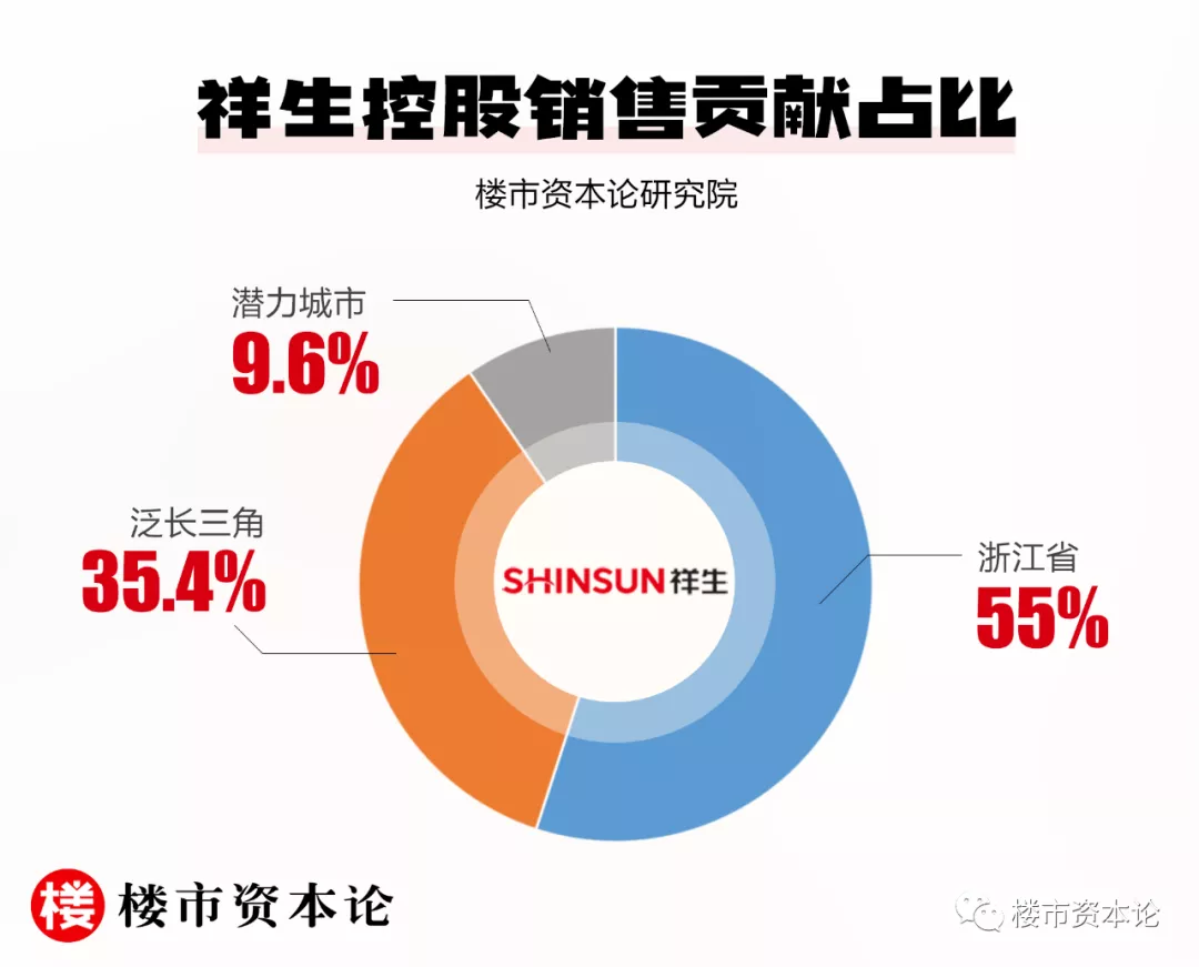 截至2021年6月30日,祥生控股集团实现权益合约销售额496.8亿元,同比增长30.4%。其中,销售贡献占比浙江省55%,贡献过半;泛长三角城市35.4%,其他城市9.6%。