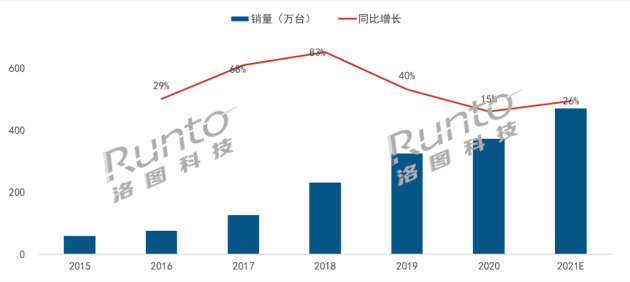 2015-2021年中国智能投影市场销量