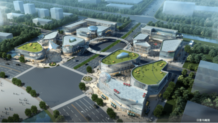 开放共享轴链接各个节点:生态运动休闲带,生态林荫大道,街区绿地;形成连续的绿色公共、半公共空间。并在绿地中注入国际文化特点的商业配套,形成尺度宜人的街道和建筑尺度。