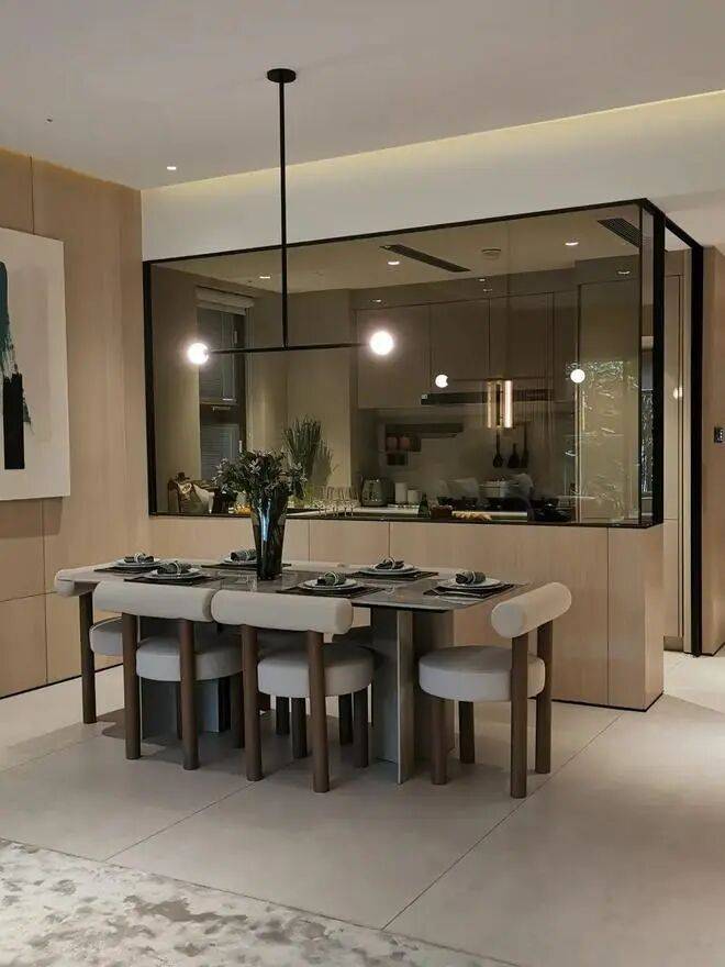 145产品为三房两厅两卫产品,餐厨一体化设计, 7米宽厅可切换各种生活场景,畅享宽幕般景观界面。