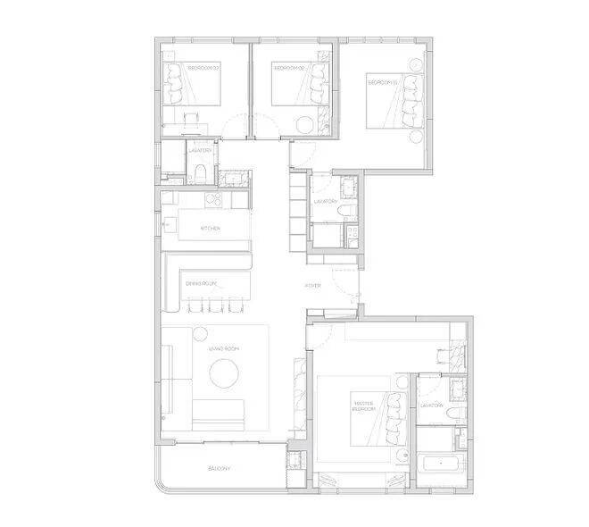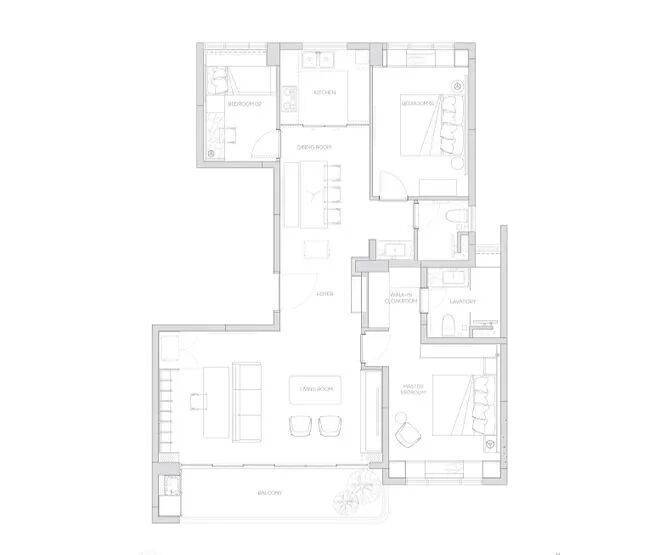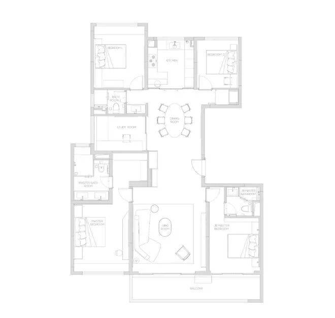 174产品为四房两厅三卫产品,打造了端户边厅布局,形成LDK一体化。无界的室内空间畅游体验,在平淡的日常里体验着生活的华章。