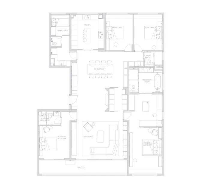 190产品为五房两厅三卫产品,充满了对云端人群生活的独特见解,南向双主卧,中西厨布局,打造纵向超长LDK一体化空间,产品所体现的不只是居住产品,更是特属客群所拥有的生活方式。