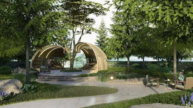 艺术花园是一个惊喜多功能空间,包括遮荫休闲廊架、承载室外会客、邻里交流等的社区场景设计,给人们提供了一个多元的交流、聚会、社交的场所。